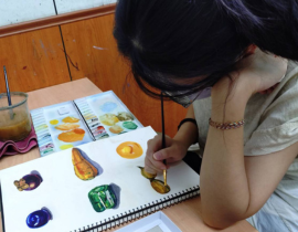 小瞳近期著墨於顏料配色與畫筆控水練習,也與社工分享她會在日常生活中蒐集一些自己喜愛的插圖,來做為繪畫的練習與靈感,社工發現小瞳在靜物繪畫上總能擁有不錯的呈現呢!雖然國三即將畢業的小瞳正在面臨生涯選擇的階段,但無論未來的抉擇是什麼,小瞳都不想輕易放棄畫畫,希望能夠持續地學習,讓畫畫繼續陪伴小瞳走向接下來的道路!