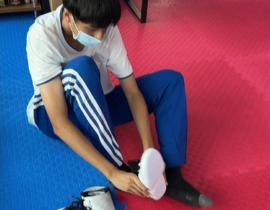阿士那雙被膠帶纏繞、痕跡滿滿的跆拳鞋,記錄著阿士一直以來的努力與付出,這次透過小舵手啟航計畫的支持,社工為阿士換上了新的跆拳鞋,讓阿士的動作變得更加俐落,笑容裡也多了幾分自信!
